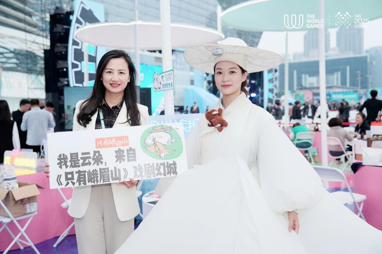 文化演藝展區(qū),來自《只有峨眉山》的一朵“云姑娘”翩翩而來,以如夢似幻的姿態(tài)再現(xiàn)《只有峨眉山》的沉浸式體驗(yàn),讓游客們在活動(dòng)現(xiàn)場就能體驗(yàn)到和在劇場一樣的情景化角色互動(dòng),深刻展現(xiàn)峨眉文化的深厚底蘊(yùn)與獨(dú)特韻味。