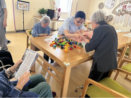 閉環(huán)管理期間,悅倫康養(yǎng)居安排了豐富的娛樂活動,為爺爺奶奶們?nèi)粘I钤黾訕啡?。護理人員陪老人讀書看報、做手工、細心為老人理發(fā)、擦洗,每日固定時間陪老人視頻連線家屬親人,用真情為入住老人撐起愛心保護傘。