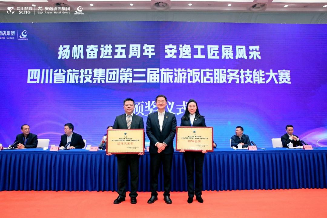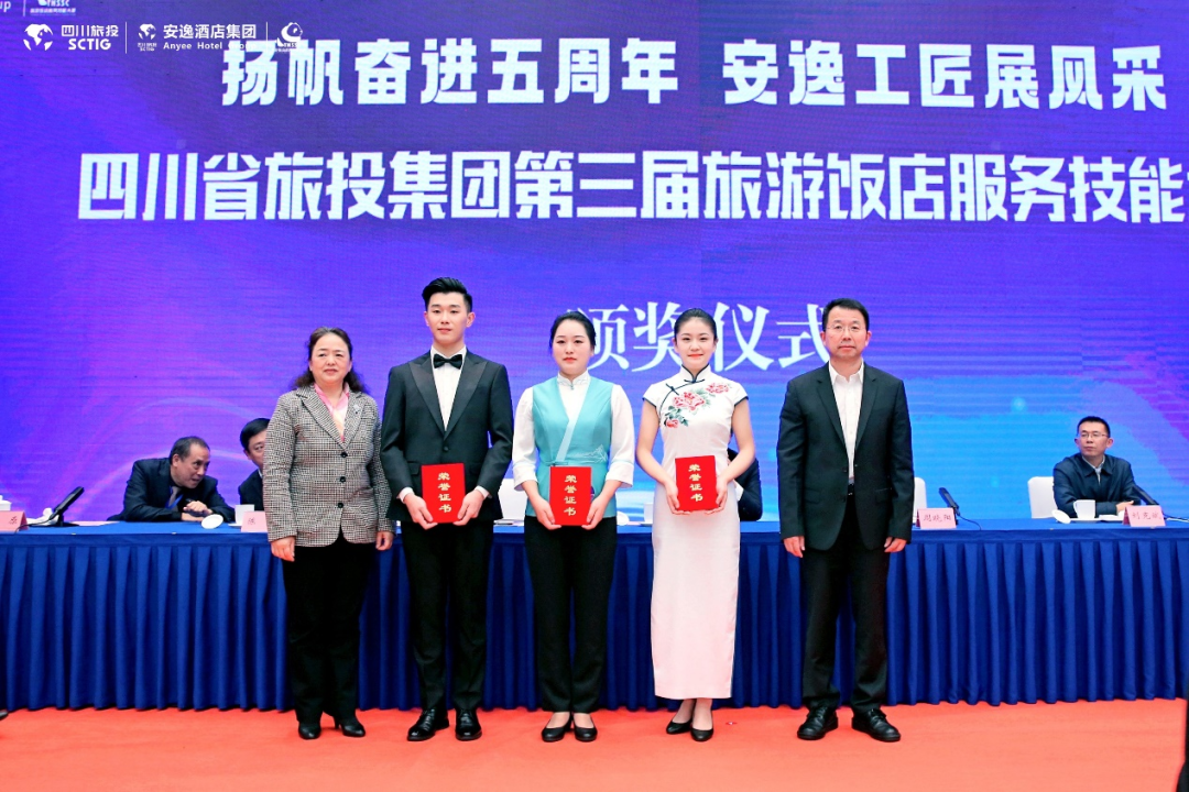 最終,金牛賓館榮獲團(tuán)體金獎(jiǎng),四川錦江賓館榮獲團(tuán)體風(fēng)采獎(jiǎng)。四川錦江賓館郭文龍榮獲前廳服務(wù)實(shí)操比賽一等獎(jiǎng),金牛賓館鄒妹榮獲客房服務(wù)實(shí)操比賽一等獎(jiǎng),金牛賓館劉瑩瑩榮獲中餐服務(wù)實(shí)操比賽一等獎(jiǎng)。
