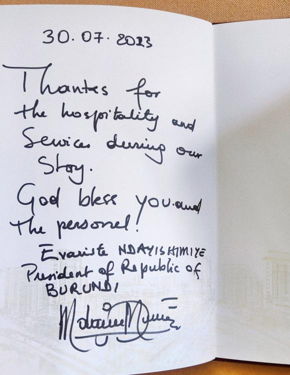 布隆迪總統(tǒng)·恩達(dá)伊施米耶感謝信